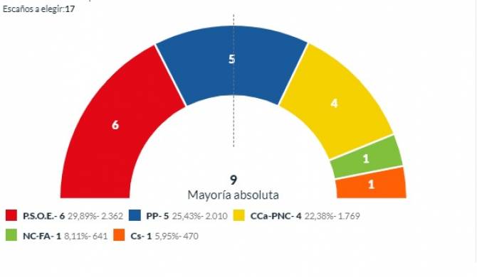 El PSOE vuelve a ganar en el Ayuntamiento de Santa Cruz de La Palma, lo que colocaría a Elías Castro como nuevo Alcalde de la capital palmera.
