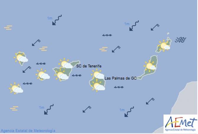 En medianías, componente este que girará a nordeste. Brisas en costa oeste.