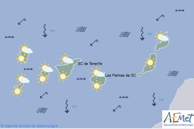 La previsión meteorológica para este miércoles en La Palma apunta a la existencia en el nordeste y este, por debajo de 700 a 900 metros, de intervalos nubosos con predominio de los claros en horas centrales.