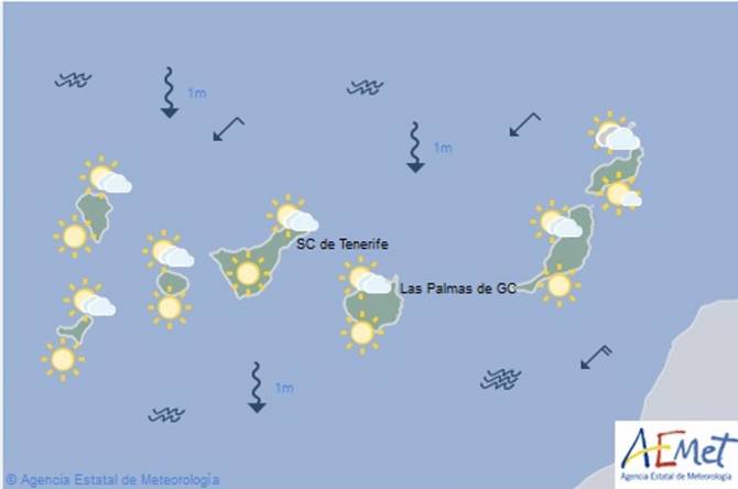 La previsión meteorológica para este jueves en La Palma apunta a la existencia de cielos poco nubosos a despejados, con algún intervalo de nubes bajas en el nordeste durante la madrugada y primeras horas.