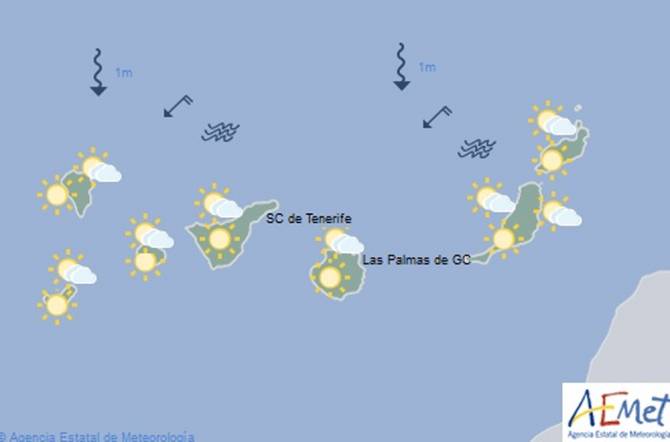 Viento del nordeste de flojo a moderado, algo más intenso en la punta noroeste y la vertiente sudeste. Brisas en costas nordeste y suroeste.