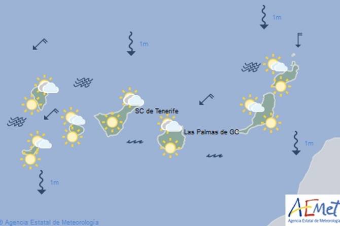 Viento del nordeste moderado, más intenso en vertientes sudeste y noroeste. Predominio de las brisas en costa suroeste.