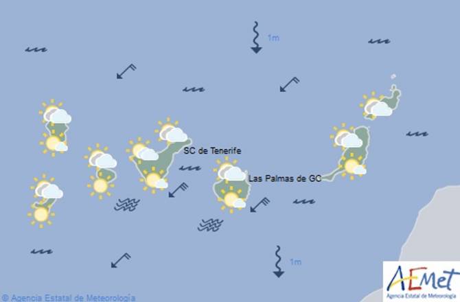 La previsión meteorológica para este jueves en La Palma apunta a la existencia, en el norte y nordeste, por debajo de unos 900 a 1.000 metros, de cielos nubosos con algunos intervalos en horas centrales.