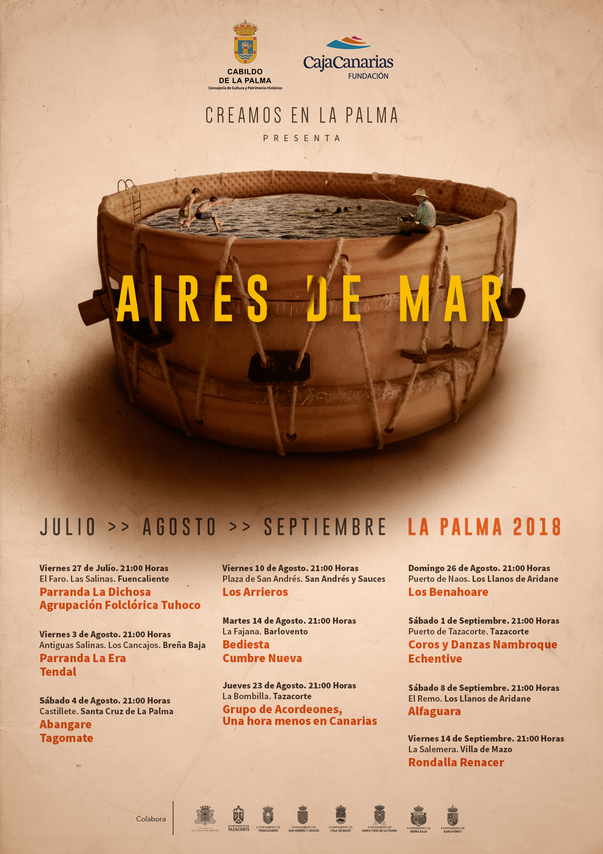 Aires de Mar es un ciclo de folclore canario que se prolongará hasta mediados de septiembre y que se enmarca en el convenio que la Consejería insular de Cultura mantiene con la Fundación CajaCanarias a través del programa Creamos en La Palma.