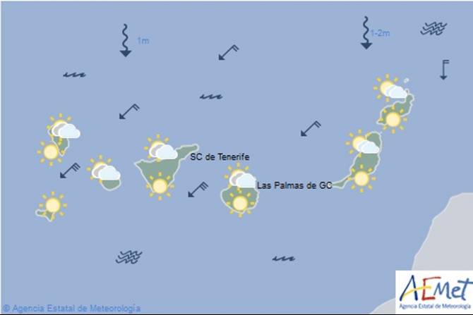 La previsión meteorológica para ese viernes en La Palma apunta a la existencia de cielos nubosos en el nordeste por debajo de unos 1.200 metros, con apertura de amplios claros por la tarde. En el resto, poco nuboso o despejado.
