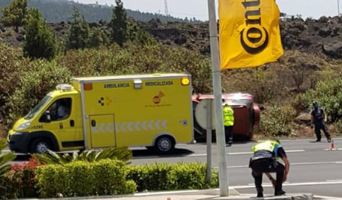 Un vehículo ha sufrido un accidente en la Recta Padrón de El Paso, justo frente a la gasolinera situada en la zona, provocando el corte de esa carril de circulación y retenciones de tráfico en la vía.