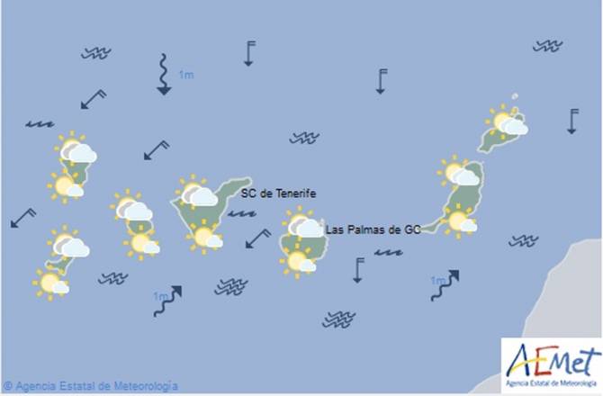 La previsión meteorológica para este lunes en La Palma apunta a que en el norte y nordeste, por debajo de unos 1.000 metros, los cielos estarán nubosos a primeras y últimas horas, predominando los cielos poco nubosos en horas centrales.