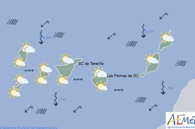 La previsión meteorológica para este jueves en La Palma apunta a la existencia en el nordeste y este, por debajo de unos 1200 metros, de cielos nubosos durante la primera mitad del día y a últimas horas, predominando los cielos poco nubosos durante las horas centrales.
