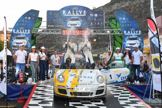 Victoria sin paliativos de Enrique Cruz-Yeray Mujica. El tinerfeño y el grancanario reeditaron el triunfo alcanzado el año pasado a los mandos de su Porsche 997 GT3 2010. Lo hicieron después de ganar todos y cada uno de los tramos cronometrados y después acumular 1h03:40.9 en los once tramos celebrados de esta 44 edición del Rallye La Palma Isla Bonita – Trofeo CICAR.