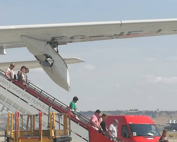 Regresa a Madrid un vuelo con destino a La Palma después de que un ave rompiera un elemento del ala