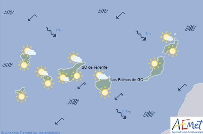 La previsión meteorológica para este jueves en La Palma apunta a que en el norte y este habrá intervalos nubosos durante la madrugada y a última hora del día, tendiendo a poco nuboso o despejado el resto del día.