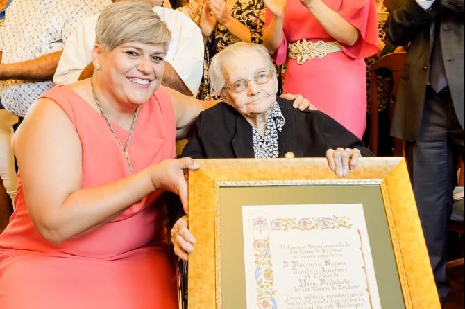 Matilde Arroyo y Nieves Jiménez son las dos nuevas Hijas Predilectas de Los Llanos de Aridane. Esta mañana a sus 99 años, la artesana de la seda Teófila Nieves Jiménez y la familia de la popular repostera, Matilde Arroyo, recibieron de manos de la alcaldesa, Noelia García Leal, la máxima distinción que el Ayuntamiento de Los Llanos de Aridane concede a la ciudadanía en reconocimiento a la labor y especial contribución que han realizado a lo largo de sus vidas en favor de la Ciudad que las vio nacer.
