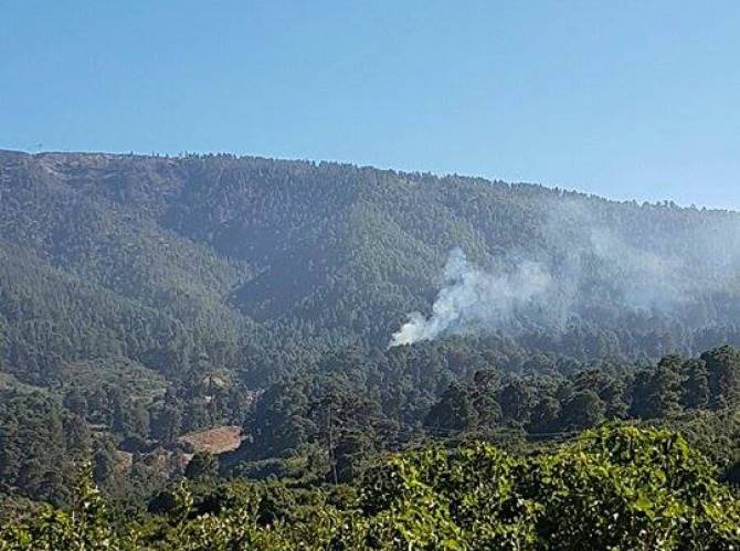 Hace unos minutos, aproximadamente a las 17:30 horas de hoy, ha comenzado a arter una zona de pinar en el barrio garafiano de La Mata.