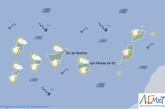 En el interior no se descarta nubosidad de evolución que podría dejar algún chubasco ocasional en horas centrales. En el resto poco nuboso o despejado.
