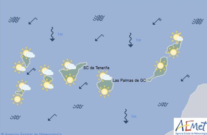 En medianías y zonas altas, de componente este flojo girando a nordeste por la tarde.