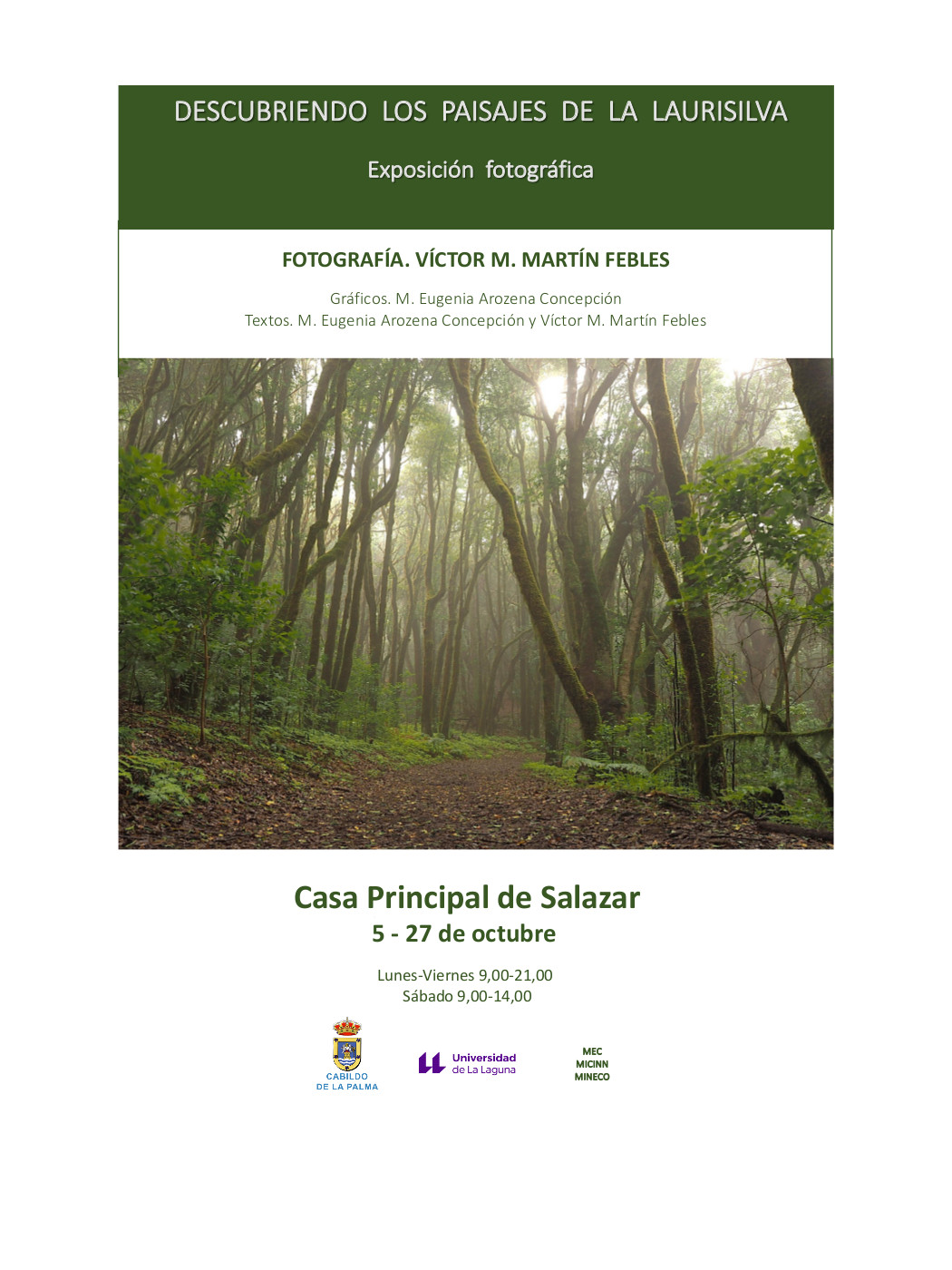 A través de las fotografías de Víctor M. Martín Febles, la exposición expone los principales resultados obtenidos de más de 11 años de estudio sobre la transformación histórica de la laurisilva liderado por el Departamento de Geografía de La Universidad de La Laguna con el objetivo de conocer hasta qué punto las variantes actuales de este bosque son fruto de una combinación entre la naturaleza y la cultura