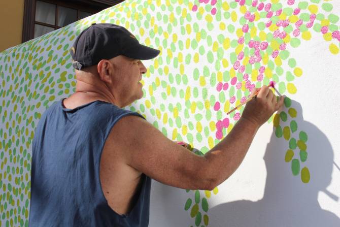 El artista venezolano de origen palmero, Acenk (Acenk Guerra Galván), trabaja en un nuevo proyecto de embellecimiento en el barrio de San Sebastián. Se trata de una intervención pictórica propuesta por la Asociación de Vecinos de La Canela y que cuenta con la colaboración la Concejalía de Movimiento Vecinal, que dirige Juan José Neris.