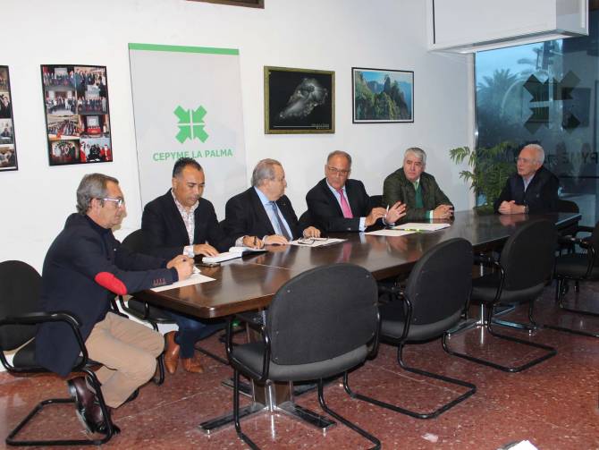 El encuentro, en el que también participó el viceconsejero de Infraestructuras Viarias del Gobierno de Canarias, Alexis González, se realizó a petición de la patronal palmera, que continúan trabajando para obtener mejores ventajas en las conexiones marítimas y aéreas para la Isla.