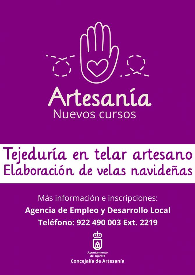 Tejeduría en telar tradicional y elaboración de velas navideñas vienen a completar otros cursos ya ejecutados o en ejecución, como confección de trajes y decoración de sombreros típicos, bordado, crochet, complementos de moda, pintura, marroquinería, alfarería canaria, pintura en tela, cestería, caligrafía o decoración floral, entre otros. Tanto el curso de tejeduría en telar como el de elaboración de velas serán impartidos por artesanos del municipio.