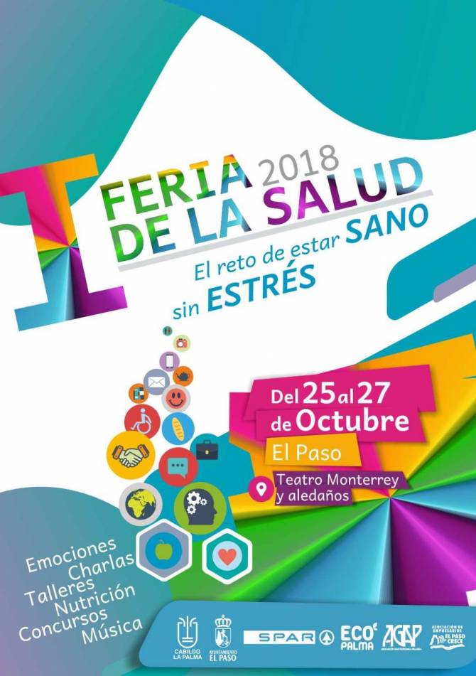 El municipio de El Paso celebra su I Feria de la Salud del 25 al 27 de octubre, bajo el lema "El reto de estar SANO sin ESTRÉS". Charlas, talleres, nutrición, concursos, emociones, y música, centrarán el amplio programa de actividades para toda la familia, que tendrá lugar en el Teatro Monterrey y aledaños.