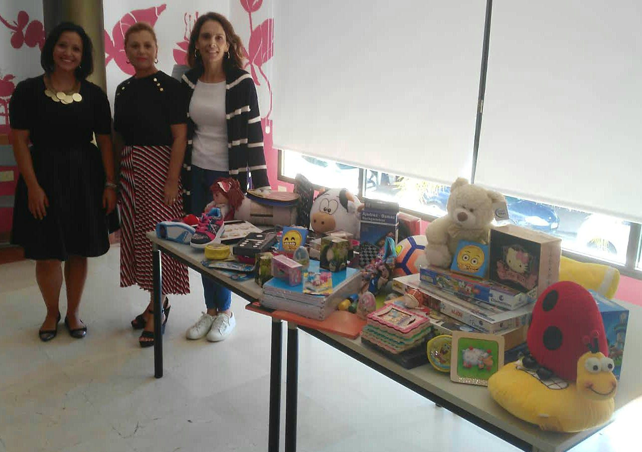 Al acto de entrega de juguetes, que tuvo lugar en el Centro de Día del municipio, asistió la concejala de Servicios Sociales del consistorio, Elena Pais Fuente; la directora de la institución de mayores, Ana Delsy Concepción Pérez, y la gerente de ACZA, Delsy López.