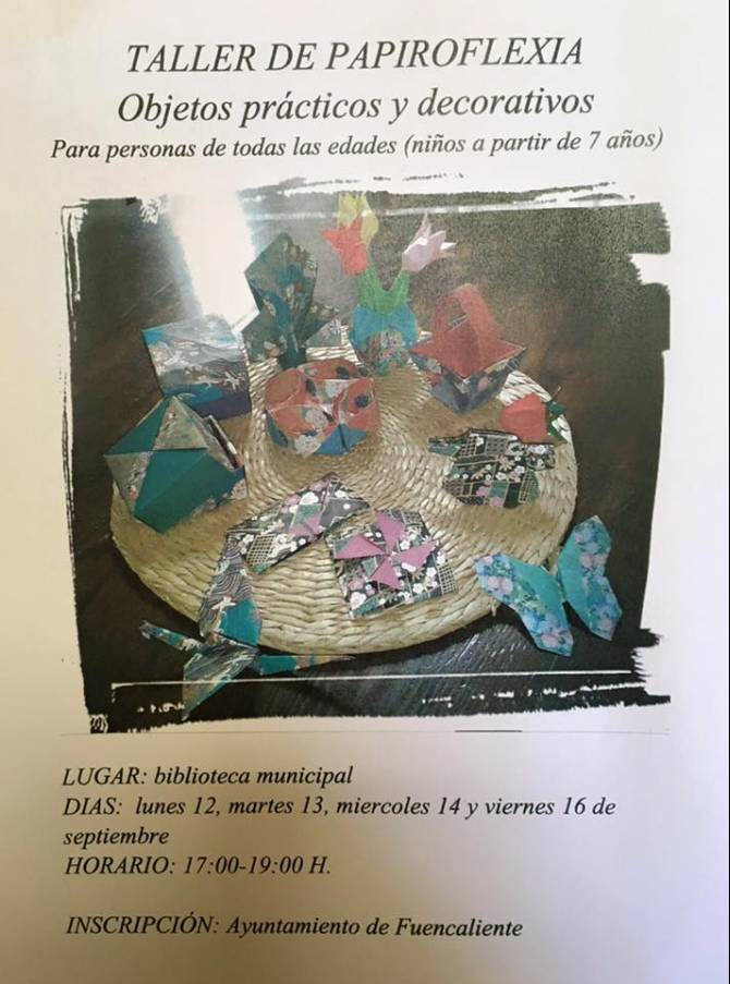 El Ayuntamiento de Fuencaliente ha organizado un taller destinado a los amantes de las manualidades, y en especial de la papiroflexia. En el curso, que se desarrollará entre los días 12 y 16 de septiembre, se realizarán objetos prácticos y decorativos.