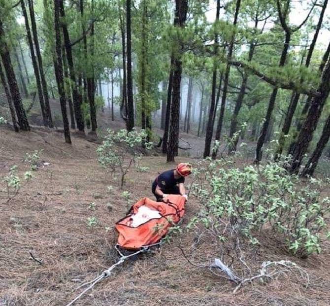Efectivos de Bomberos La Palma han rescatado en la tarde de este martes a un senderista alemán de 74 años que sufrió una caída de 15 metros por un desnivel en La Caldera.