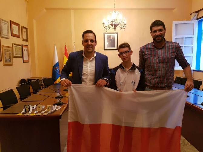 Felipe y Rodríguez han felicitado a Ángel Luis Cubas, de 13 años, por los excelentes resultados alcanzados en la competición, en la que ha conseguido tres medallas de oro, tres de plata y una de bronce, además de un Pentamind.