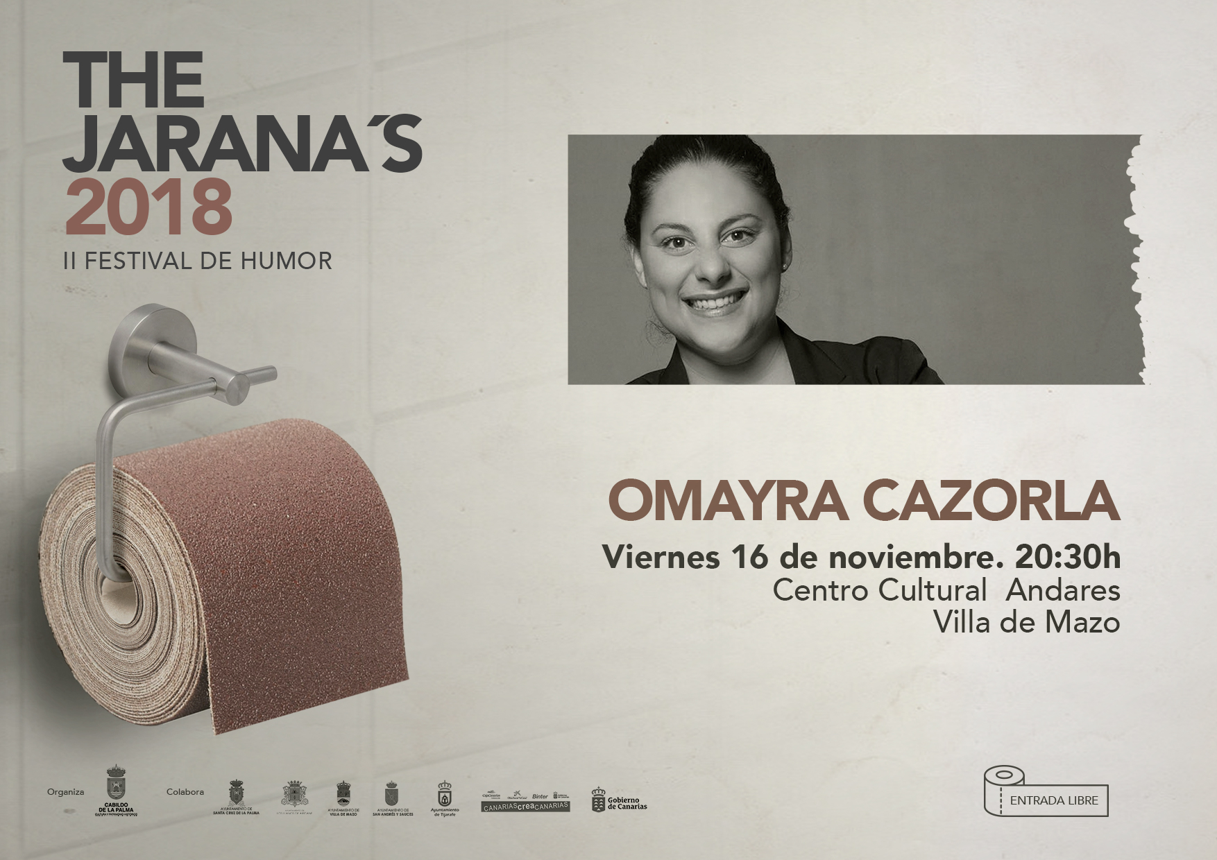 El humor de Omayra Cazorla llega este viernes al Centro Cultural Andares de Villa de Mazo. A partir de las 20:30 horas, y con entrada gratuita, se podrá disfrutar de la última actuación enmarcada en el ciclo de humor The Jarana’s que organiza la Consejería de Cultura del Cabildo Insular de La Palma con la colaboración de los ayuntamientos implicados.
