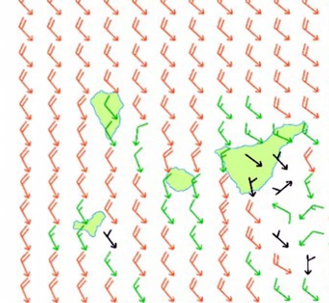 Viento del noroeste con intervalos de fuerte en medianías y zonas altas. En cumbres, viento fuerte del noroeste con rachas que puntualmente podrían estar en torno a los 60 km/h.