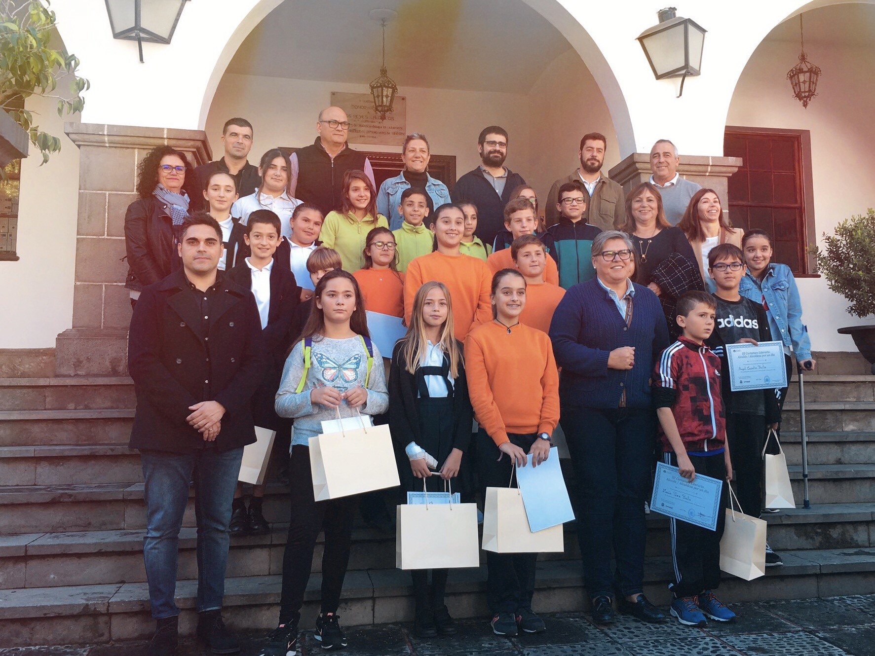 Durante la sesión plenaria, la alcaldesa y teniente alcalde estuvieron acompañadas de los alumnos del CEIP Los Campitos, Alexia Concepción Martín, Isabel González Rodríguez y Nicolás Martín Águeda; de los del CEIP María Milagros Acosta García de Puerto Naos Elisabetta Hernández Trancherce, Ángel Capote Brito, Stacey González Pérez yMario Pérez Brito; de los representantes del colegio Sagrada Familia de Nazaret Marco Rodríguez Acosta, Fiorella Acosta Hernández, Alba Simón Brito, Antonio Brito Hernández e Isabella García Rodríguez; así como por los del CEIP Todoque Esmeralda López Gongia, Sergio Hernández González, Cynthia Lean Bravo de Laguna; y por los del CEIP Mayantigo Manuel Pérez Marante, Ania Andrea Gaviria Cardona, Eralia Gómez Ramos y Hugo Hernández Pérez.