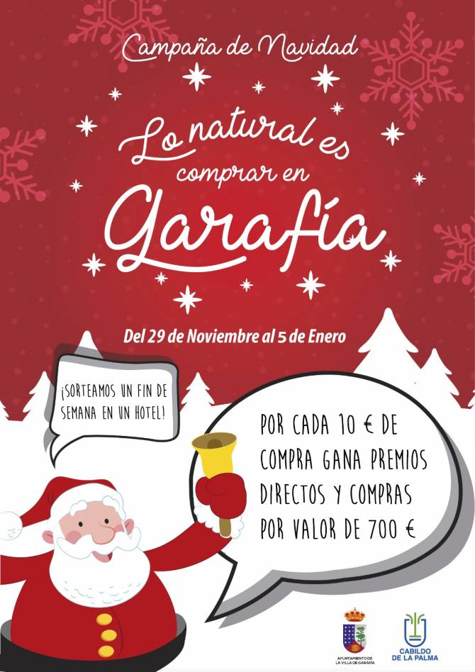 La campaña comercial de Navidad en Villa de Garafía contará con la participación de 23 establecimientos, entre los que se repartirán 15.000 boletos y más de 1.000 rascas a las personas que realicen sus compras navideñas en el municipio. La iniciativa, impulsada por el Ayuntamiento a través de la Agencia de Empleo y Desarrollo Local, con la colaboración del Cabildo de La Palma, se desarrollará entre el 29 de noviembre y el 5 de enero, promocionándose bajo el eslogan “Lo natural es comprar en Garafía”.