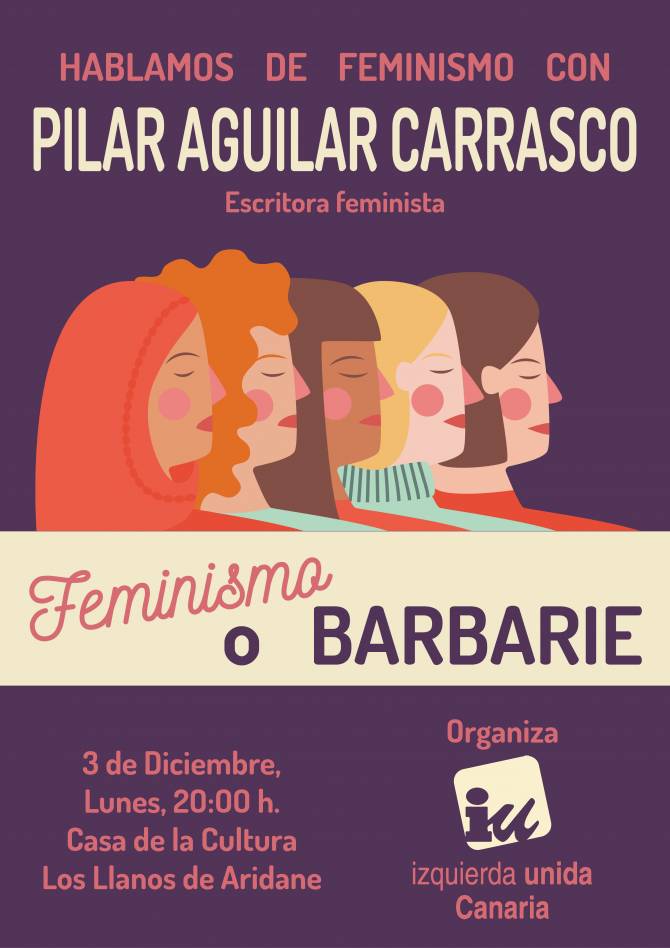 Izquierda Unida Canaria (IUC) en La Palma organiza un encuentro sobre feminismo con la ensayista y crítica de cine Pilar Aguilar Carrasco el próximo lunes, 3 de diciembre, a partir de las 20:00 horas en el Salón de Actos de la Casa de la Cultura de Los Llanos de Aridane.
