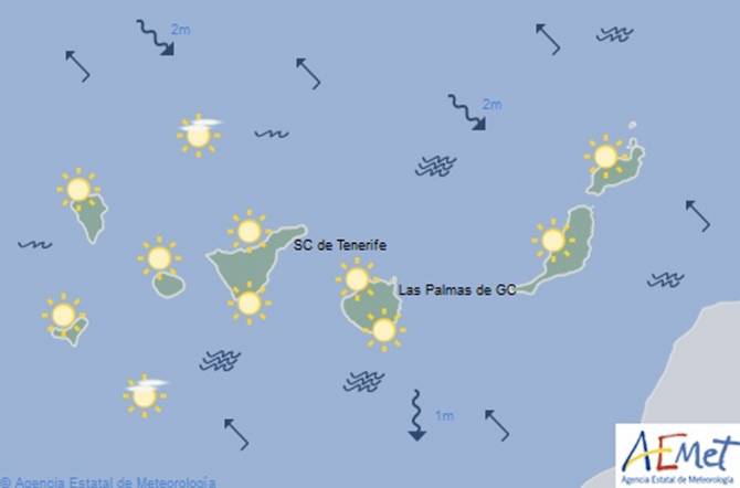 Viento del sudeste flojo a moderado, algo más intenso en vertientes este, oeste y cumbres en horas centrales; predominio de las brisas en costa norte.