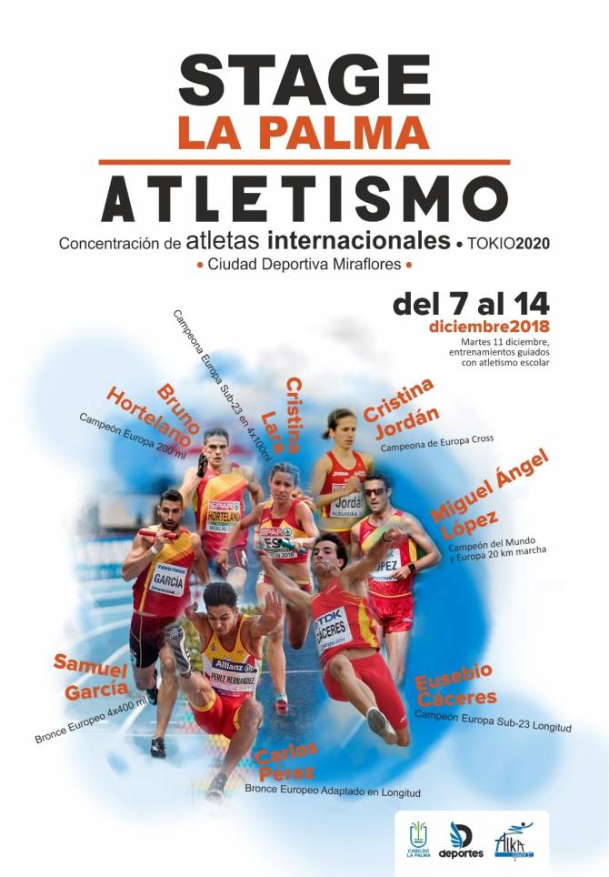 Entre el 7 y el 14 de diciembre pasarán por la Ciudad Deportiva de Miraflores Bruno Hortelano, campeón de Europa de 200 metros lisos; el palmero Samuel García, bronce europeo en 4x400 metros lisos; Cristina Lara, campeona de Europa sub23 en 4x100 metros lisos; Cristina Jordán, campeona europea de cross; Miguel Ángel López, campeón del Mundo y de Europa en 20 kilómetros marcha; Eusebio Cáceres, campeón de Europa sub23 en salto de longitud; y el palmero Carlos Pérez, bronce en el Campeonato de Europa de salto de longitud.