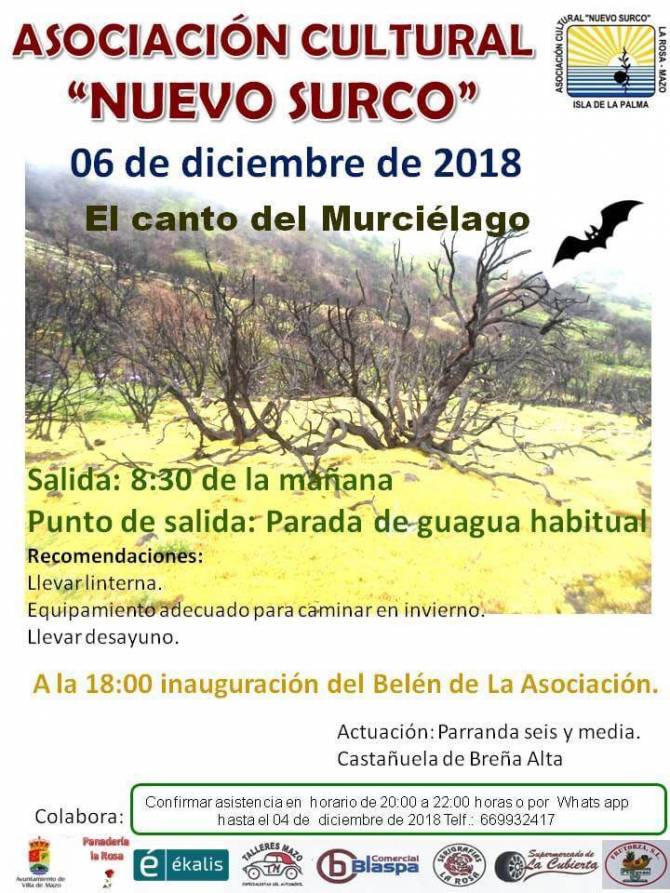 Este jueves la Asociación Cultural “Nuevo Surco”, formada por los vecinos de La Rosa con el objetivo de revitalizar y recuperar las tradiciones del barrio, promueve la ruta ‘El canto del Murciélago’, en la que harán un recorrido por varios rincones del municipio.