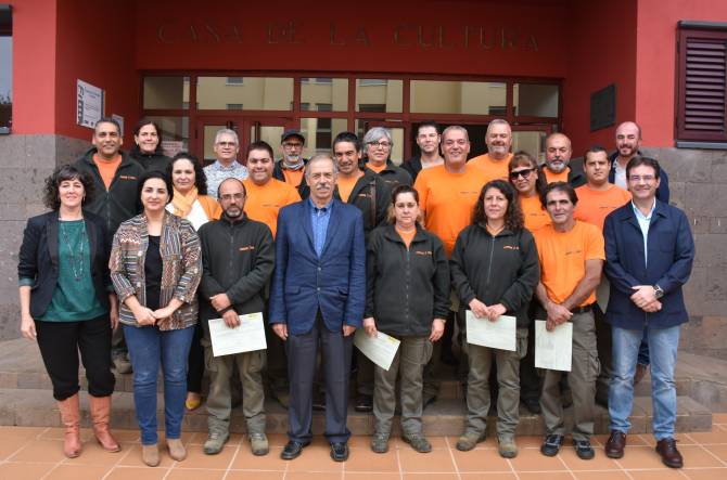 Finaliza el Programa de Formación en Alternancia con el Empleo “Puntallana Verde y Sostenible”, que ha tenido una duración de 11 meses, durante el cual 15 personas desempleadas se han formado en el Certificado de Profesionalidad de Actividades auxiliares en Viveros, Jardines y Centros de Jardinería. Además de recibir una amplia formación complementaria y prestar servicios en los jardines municipales, les ha permitido adquirir experiencia laboral y de esta manera incrementar sus posibilidades de inserción en el mercado laboral. El programa está promovido por la Asociación para el Desarrollo Rural de la isla de La Palma, ADER LA PALMA con la colaboración del Ayuntamiento de Puntallana, y financiado por el Servicio Canario de Empleo y el Servicio Público de Empleo Estatal.