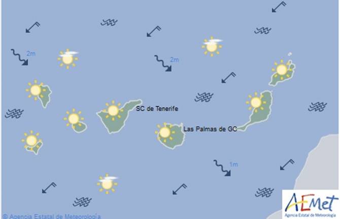 Viento del nordeste de flojo a moderado, algo más intenso a partir de mediodía en la vertiente sudeste y en el extremo noroeste.