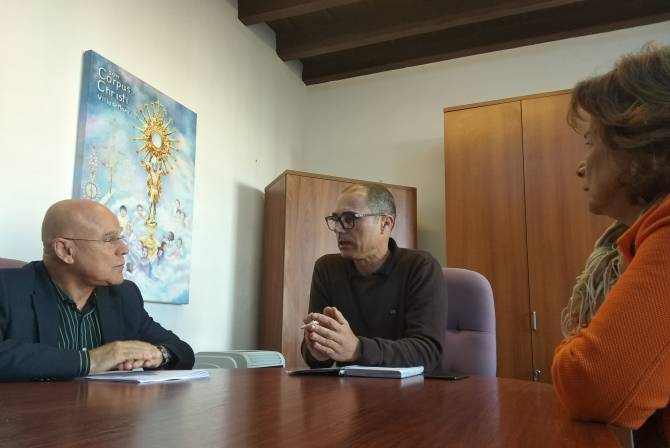 El alcalde de Villa de Mazo, José María Pestana, ha mantenido un encuentro con el Diputado del Común, Rafael Yanes, y la responsable de las áreas de Seguridad Pública y Justicia del Diputado del Común, Milagros Fuentes, que han visitado la corporación local para establecer una vía de comunicación directa con el municipio y donde el alcalde le ha trasladado las necesidades más importantes de la localidad.