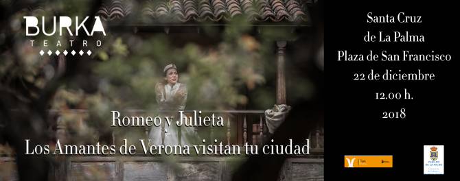 La compañía Burka Teatro llevará este sábado a la plaza de San Francisco de Santa Cruz de La Palma la representación del clásico universal Romeo y Julieta en un original montaje que lleva por sobrenombre Los amantes de Verona visitan tu ciudad. La Consejería de Cultura del Cabildo de La Palma promueve esta propuesta que combina teatro y divulgación del patrimonio cultural e histórico, y que se enmarca en el Circuito de Teatro, Música y Danza del Gobierno de Canarias.