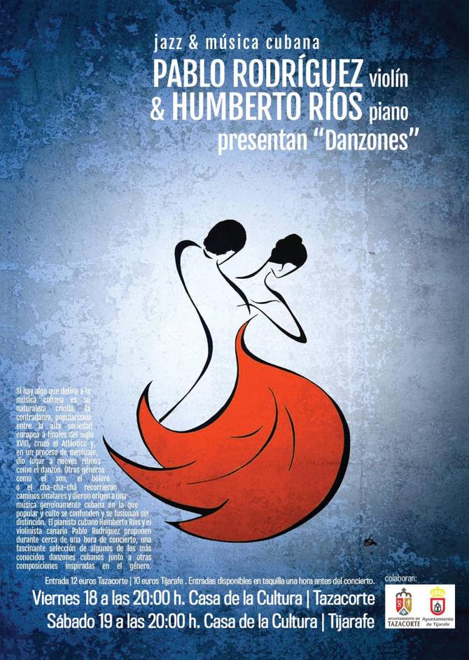 El pianista cubano Humberto Ríos, junto al violinista canario Pablo Rodríguez, presentan, este sábado 19 a las 20:00 horas, en la Casa de la Cultura José Luis Lorenzo, 'Danzones. Música cubana y jazz', una fascinante selección de algunos de los más conocidos danzones cubanos, así como de otras composiciones inspiradas en este género. Además, compartirán con los asistentes un anticipo de su próximo trabajo “Conversaciones”.