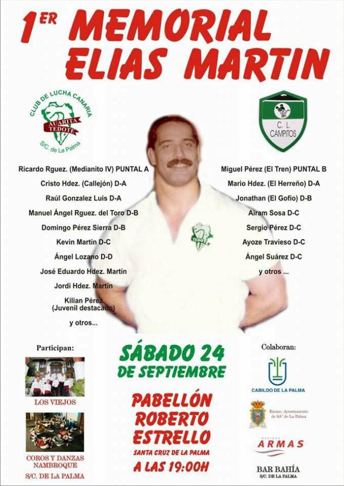 El Pabellón Roberto Rodríguez Estrello de Santa Cruz de La Palma acoge este sábado, día 23, la celebración del primer Memorial Elías Martín de lucha canaria, en memoria de quien fuera un luchador de referencia en este deporte en la isla de La Palma.
