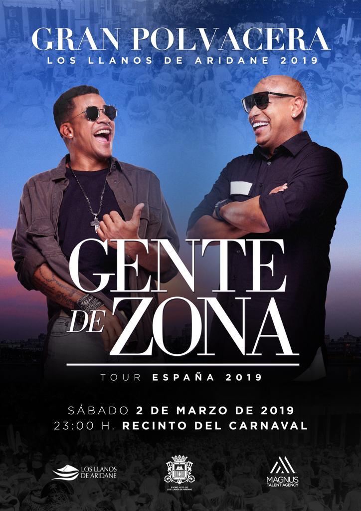 Después de casi dos décadas de carrera musical, el popular dúo formado por los cubanos Alexander Delgado y Randy Malcom Gente de Zona contagiará éste sábado el Carnaval de Los Llanos de Aridane con su particular estilo musical. Su pegajoso ritmo es una fusión del son cubano tradicional, el reggaetón y música del Caribe que sin lugar esta dominando el sonido global.