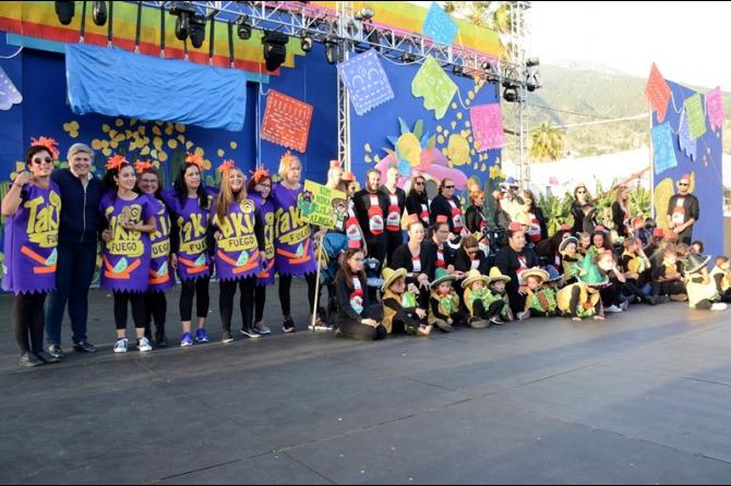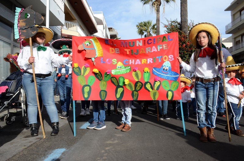 Fieles a su cita, participaron en el gran coso escolar los alumnos de la Escuela Municipal Infantil Nina Lola Albelo, Guardería Encantia, Centro de Educación Obligatoria (CEO) Tijarafe, y los Centros de Educación Infantil y Primaria (CEIP) Todoque, Puerto Naos, La Laguna, Mayantigo, Mariela Cáceres, El Roque, Jedey y Arco Iris.