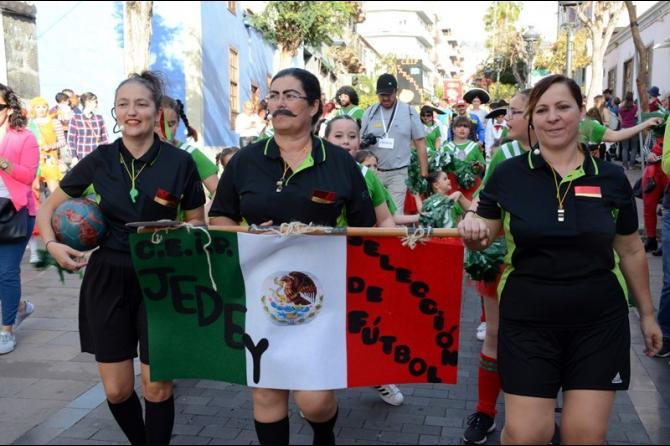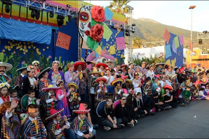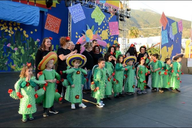 Ataviados con sus fantasías, muchas las cuales rendían su particular homenaje a Méjico, los menores recorrieron el casco urbano comprendido entre la Avenida Sarbelio Pérez Pulido, pasando por la calle Real y la Avenida Doctor Fleming para culminar en el recinto del carnaval, anunciando la llegada del primer fin de semana del carnaval aridanense.