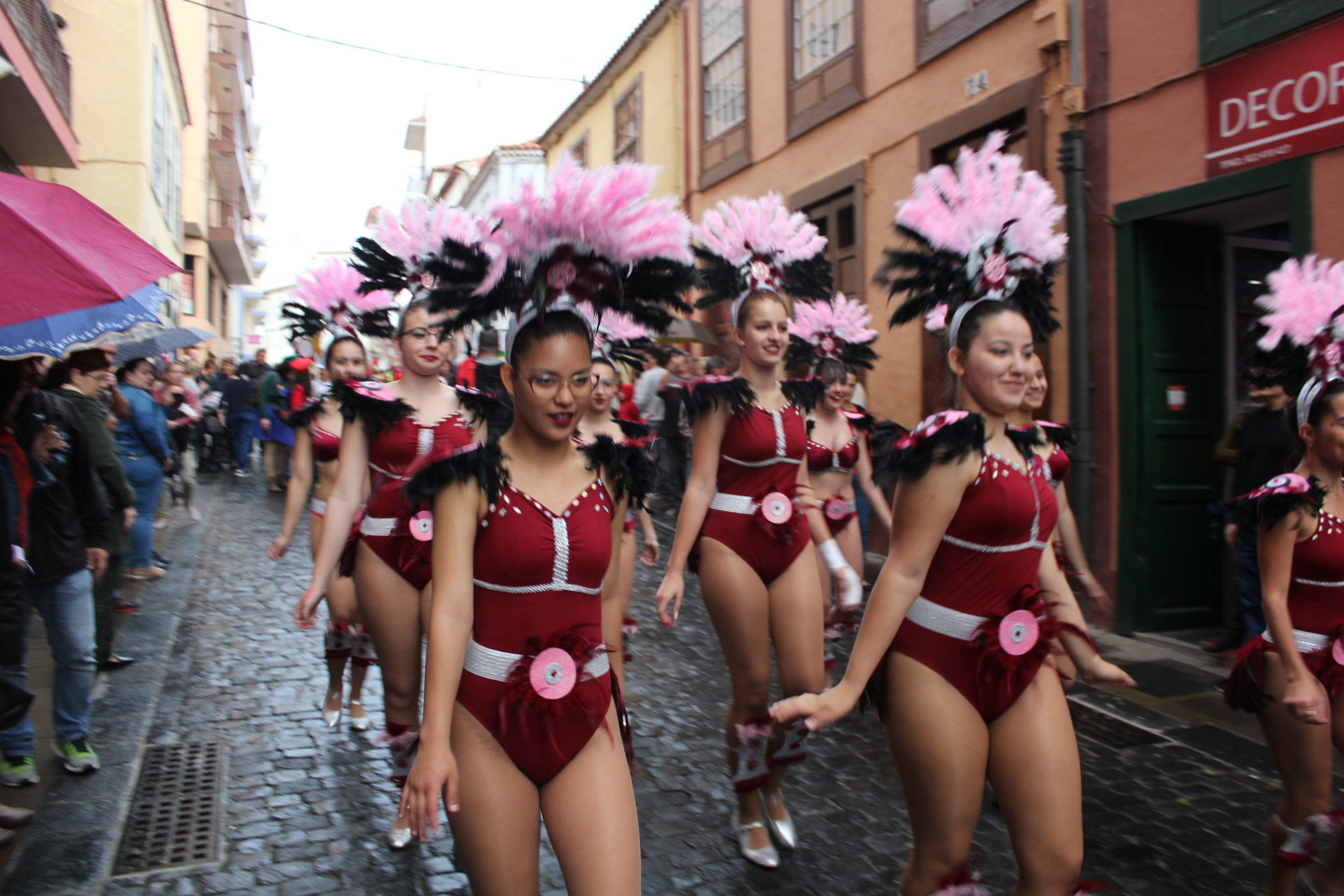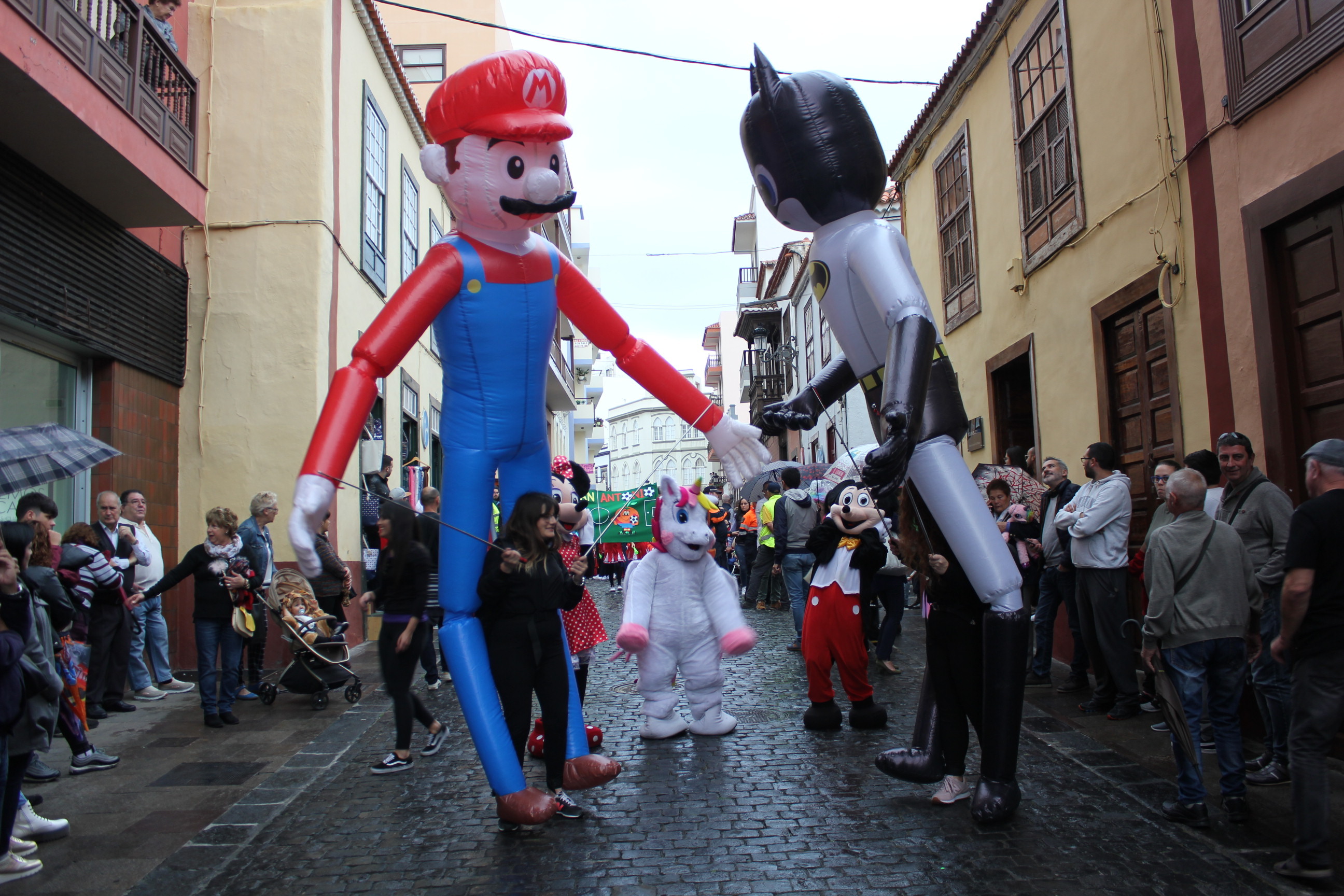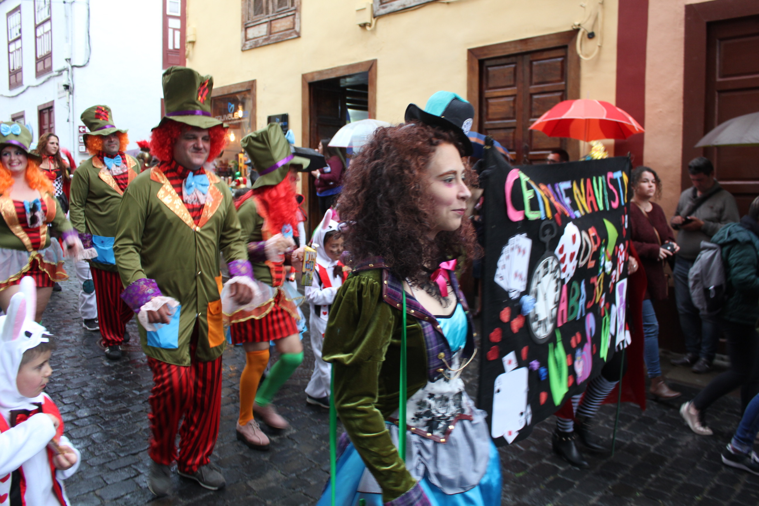 Pese a la lluvia, cientos de niños y mayores de los centros escolares de Santa Cruz de La Palma participaron en el desfile anunciador del Carnaval de Santa Cruz de La Palma
