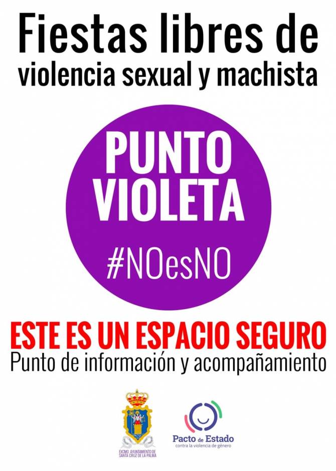 El Ayuntamiento de Santa Cruz de La Palma habilitará el próximo lunes, día de Los Indianos, un Punto Violeta de información y acompañamiento para atender posibles casos de violencia sexual y sexista. La concejalía de Bienestar Social e Igualdad de Oportunidades dispondrá de este espacio de información y atención en la rotonda de entrada a la Avenida Marítima desde las 18:00 hasta las 01:00 horas del martes día 5.