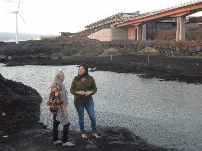 La diputada del PSOE por La Palma, María Victoria Hernández, y la portavoz socialista en Villa de Mazo, Goretti Pérez Corujo, visitaron esta semana la costa situada junto al aeropuerto de la isla, enclave sobre el que se aprobó recientemente una proposición no de ley en el Parlamento canario a instancias del Grupo del PSOE para solicitar al Estado su regeneración.