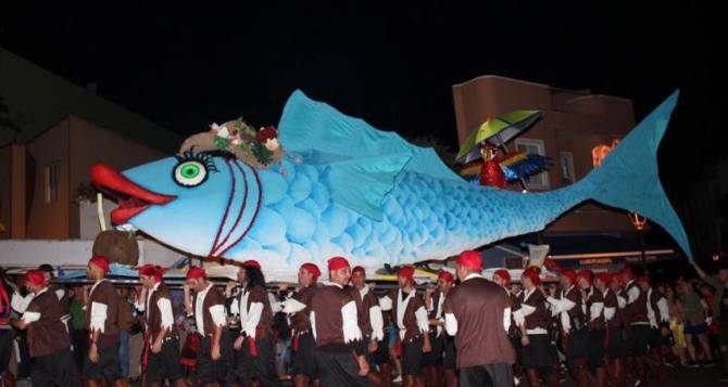 Al llegar la noche, tras la apertura del quiosco en que se asarán las sardinas y se degustará vino del país, se llevará a cabo una fiesta de carnaval, con la música de parrandas por los diferentes Bares de la Zona del Drago.