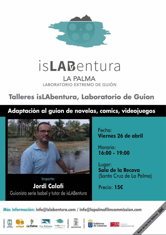 En concreto, el guionista de la serie Isabel y tutor de isLAbentura, Jordi Calafí, ofrecerá el viernes 26 de abril en horario de 16:00 a 19:00, en la Sala Municipal de la Recova de Santa Cruz de La Palma, un taller de adaptación al guion desde la novela, el cómic o el videojuego.